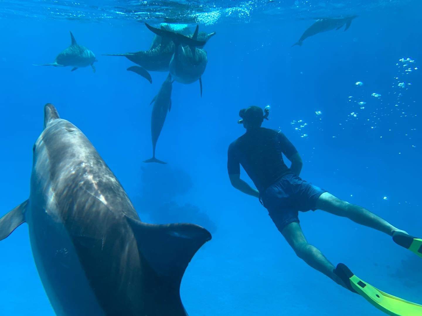 Sataya is a coral reef in the Red Sea where wild dolphins come every day.